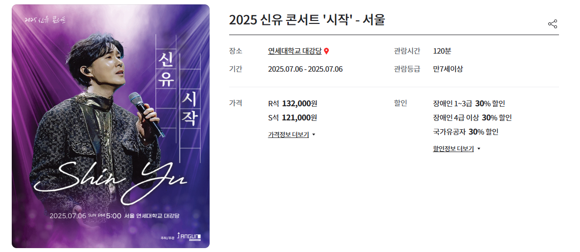 - 공연명: 2025 신유 전국투어 콘서트 ‘시작’ – 서울