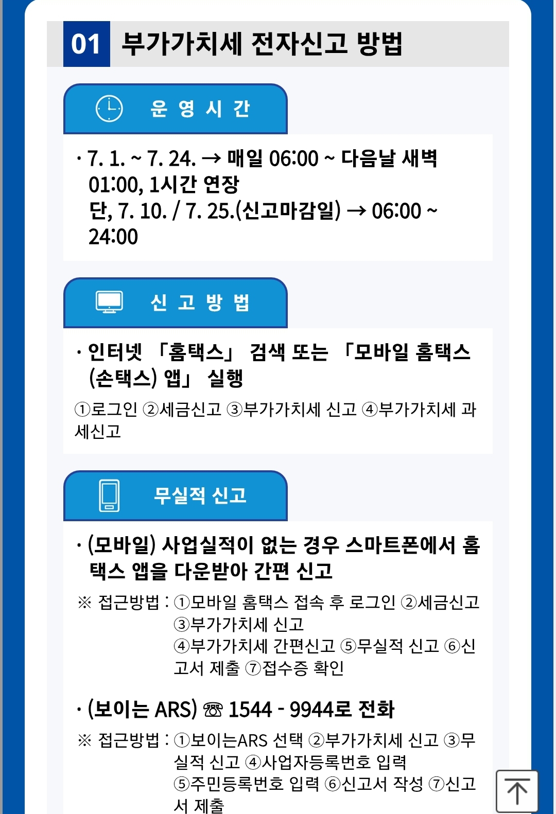 ※ 신고 마감일에는 홈택스 접속 폭주로 인해 오류가 생길 수 있으니 미리 신고·납부하는 것을 추천드립니다.