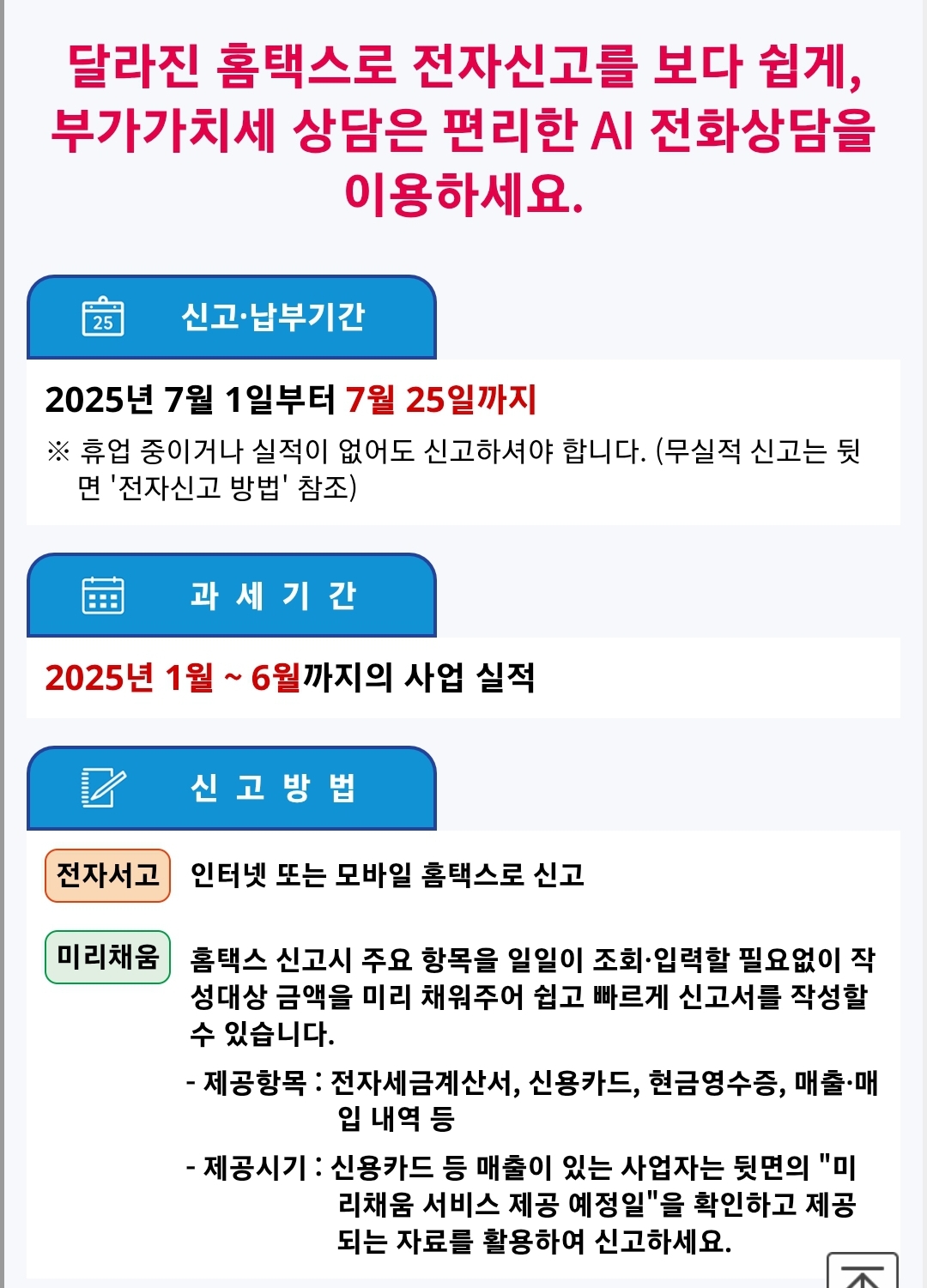 - 2025년 1월 1일 ~ 6월 30일까지의 공급가액에 대한 확정신고