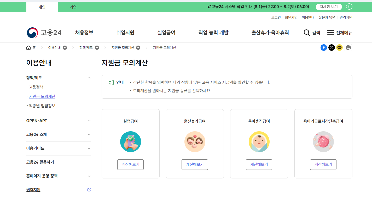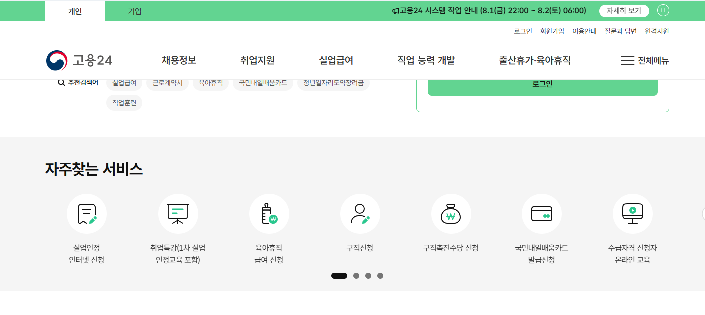 - 고용보험 홈페이지 접속 → 로그인